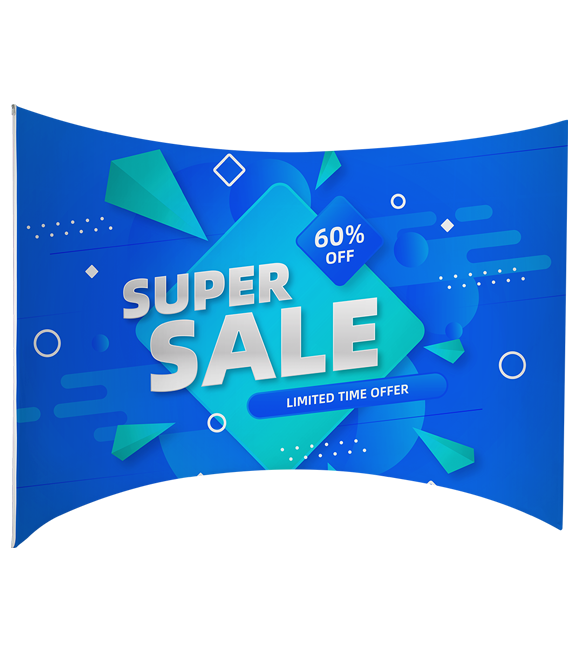 See other styles from 8ft to 20ft wide in Straight, Curved, Wave, U-Shape and C-Shape styles printed on one or two sides, complete kits or fabric only.